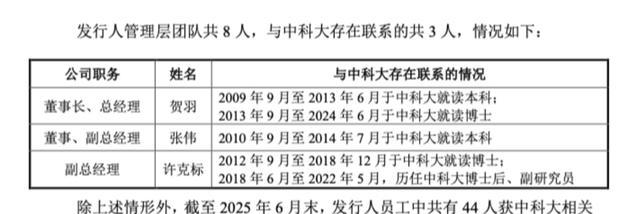 公司研发团队中7人曾经在中科大任职,截至2025年6月,国仪量子员工中共有44人获中科大相关学历。