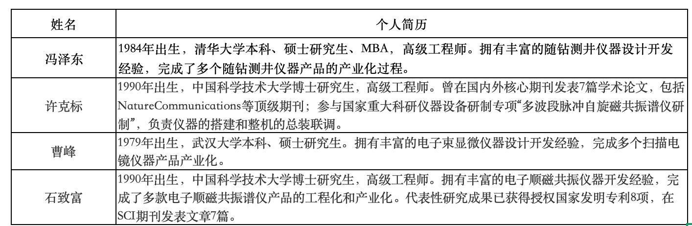 目前,公司的核心技术骨干主要为许克标、石致富、曹峰及冯泽东四人,他们分别为公司量子信息技术、电子显微镜和随钻测量三大业务板块的技术带头人和业务骨干。